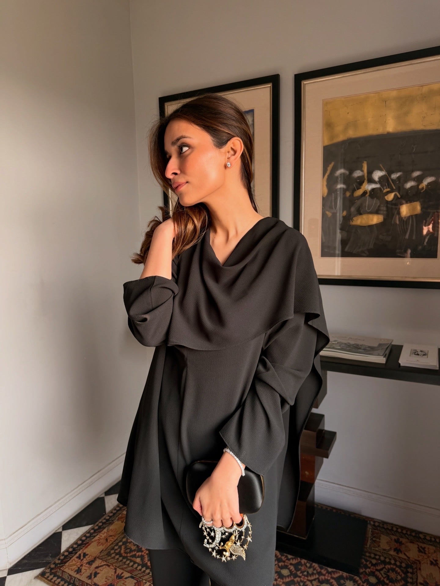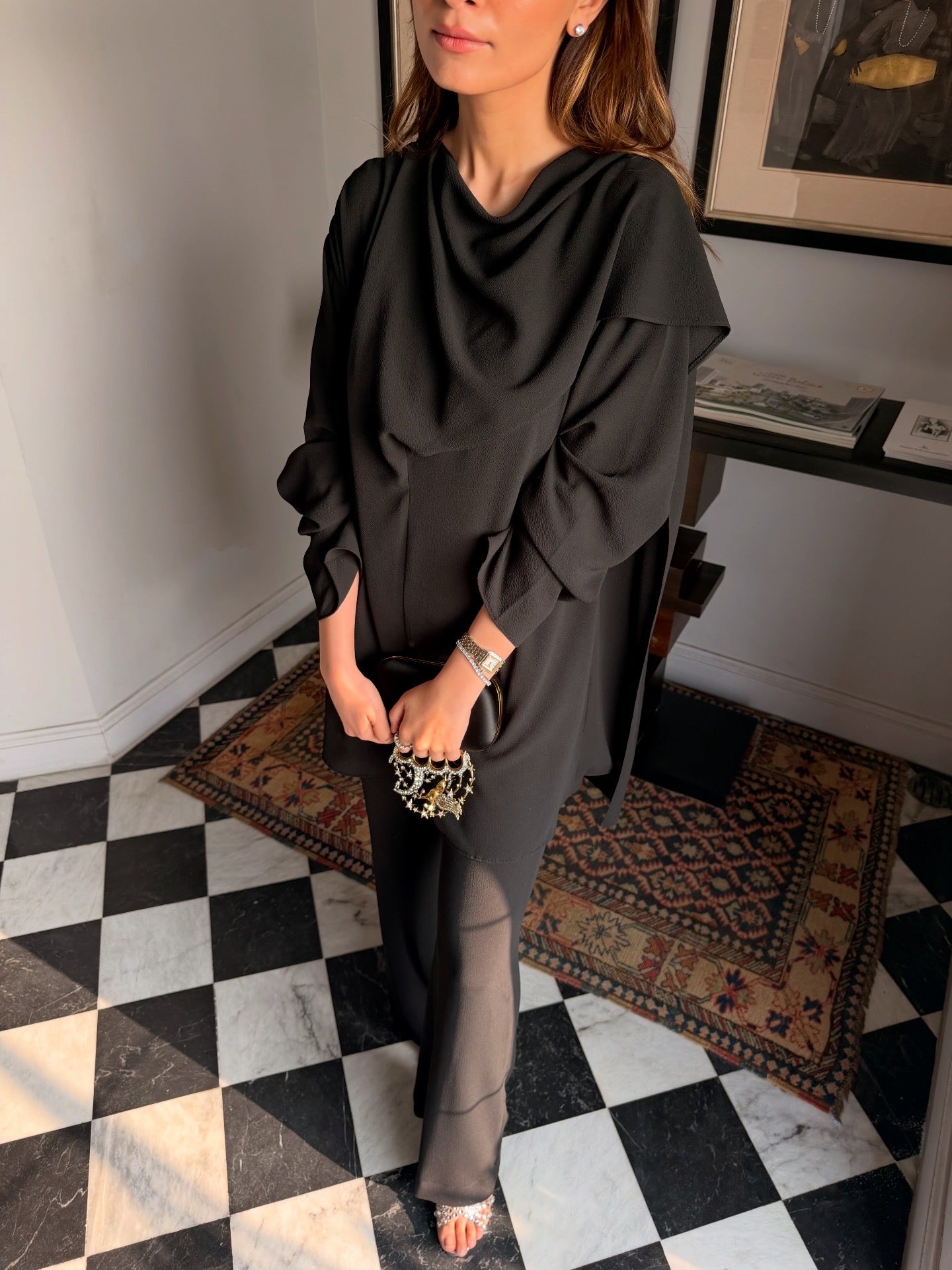 Can be styled two ways - with drape left loose or fastened it to create a cowls neck.